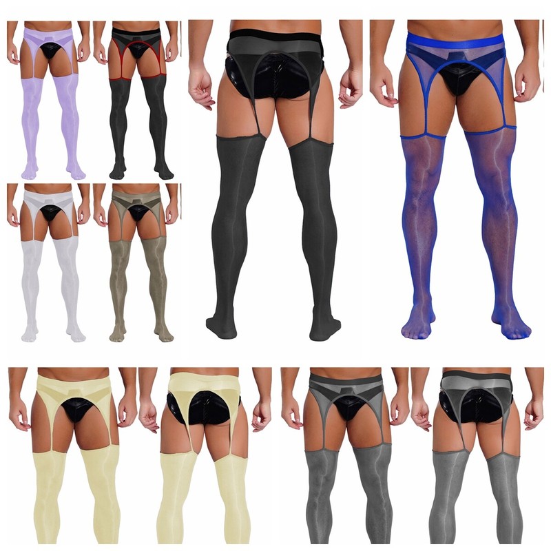 Men Fishnet Footed Thigh High Sheer Hold-Up Pantyhose Stockings Tights Underwear