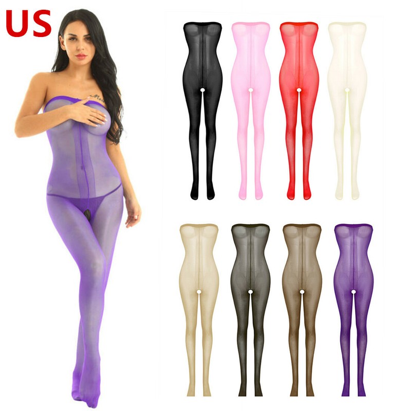 Womens Oil Glossy Footed Nylon Spandex Tights Opaque Hollow-Out Pantyhose Pants