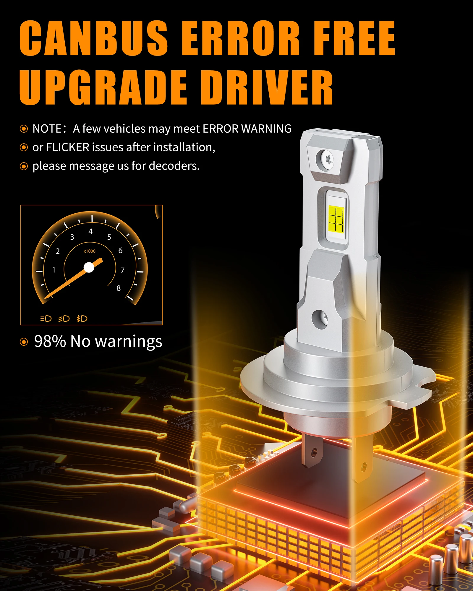 Canbus Error Free for 98% Vehicles but load resistors may still be needed for vehicles equipped with CANBUS system to bypass the error codes .
