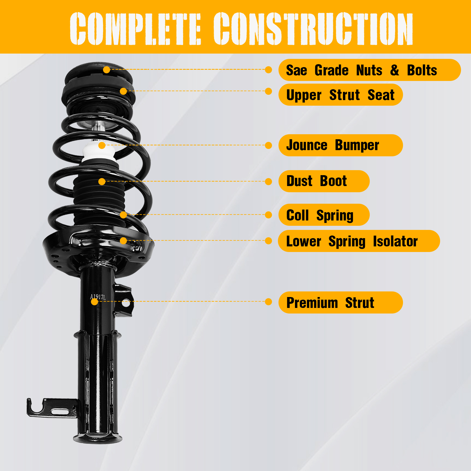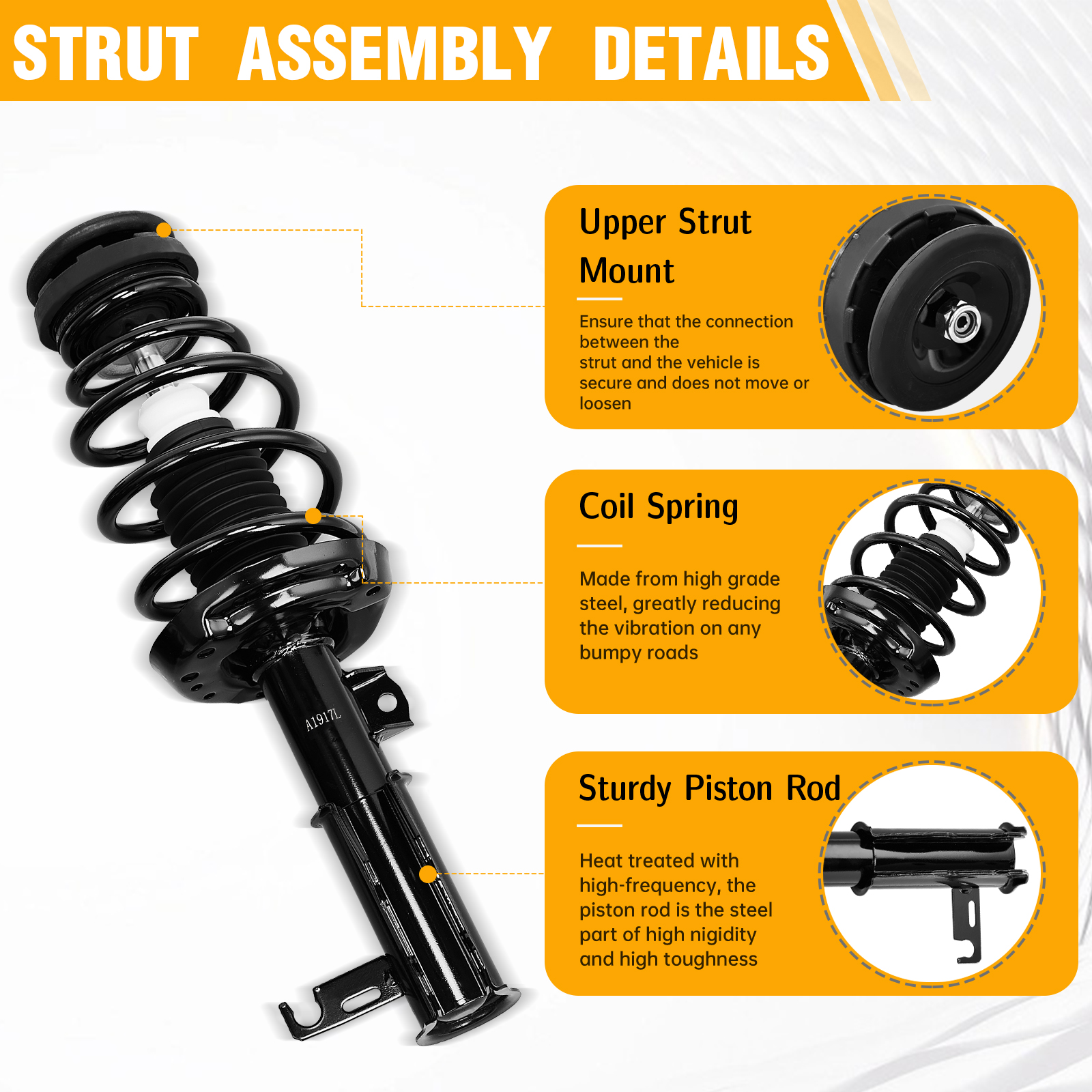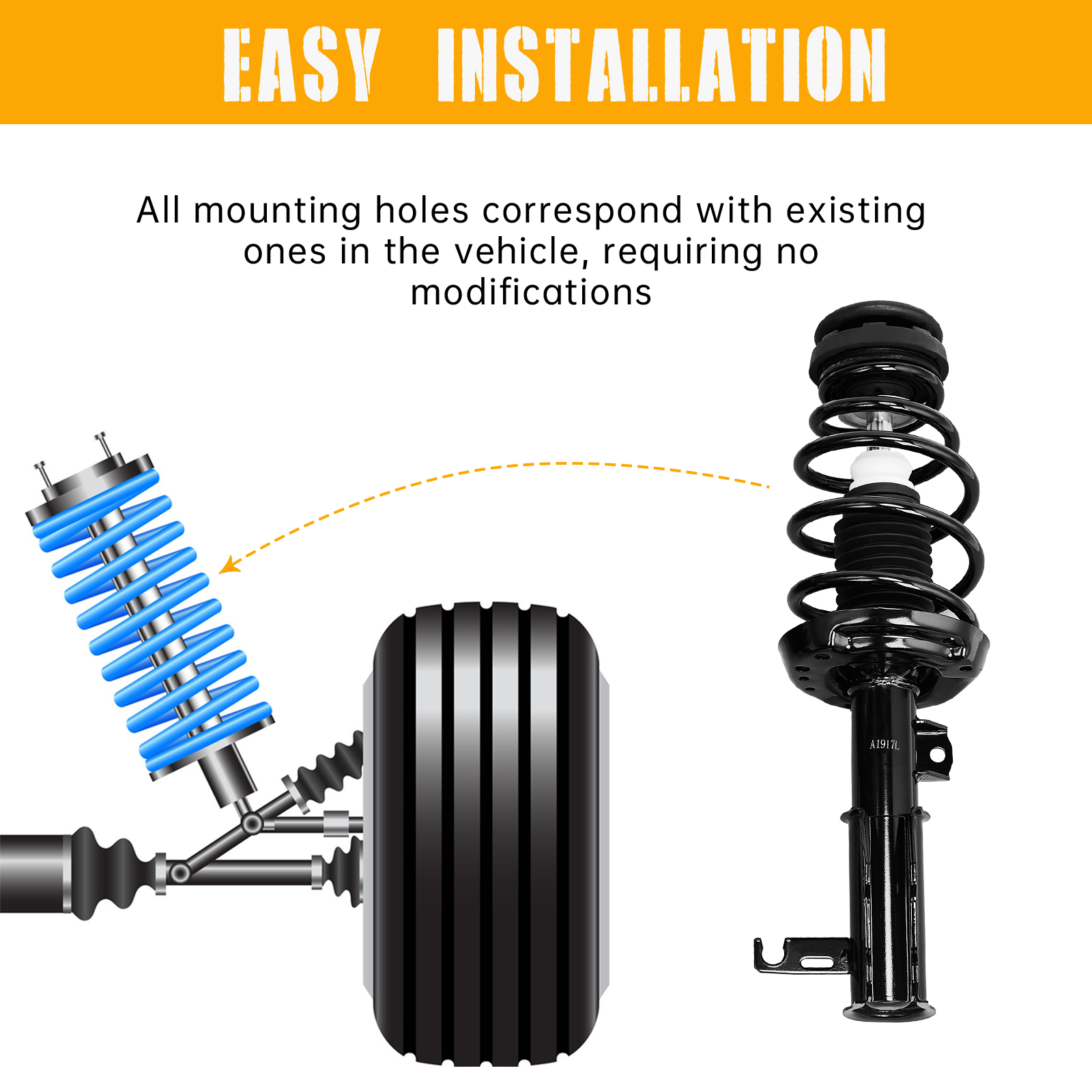 In order to suppress the spring shock when inhaling the rebound after a shock and impact from the road, the Front Complete Shock Absorbers Assemblies is necessary for you to choose. After a rough road, although the shock absorption spring can filter the road vibration, but the spring itself will have a reciprocating motion, so the shock absorber is used to suppress this spring jumps. Made of high quality it is durable and sturdy in use. Features high corrosion resistance and long service life, it is an excellent product that you can't miss. The newly installed valve technology is based on the speed of the car. Come and order one to take a try!