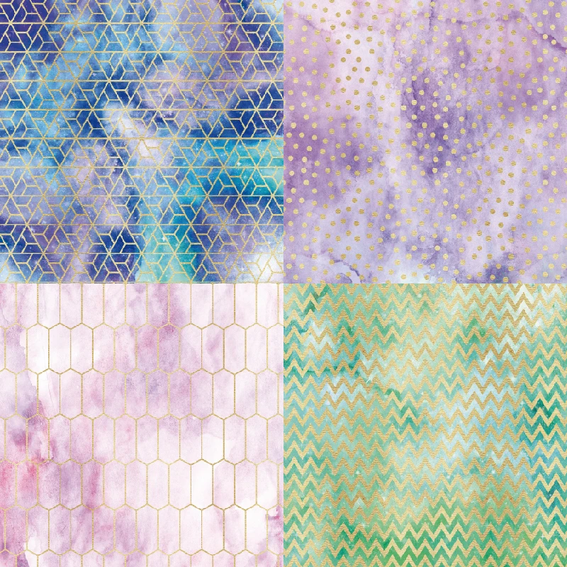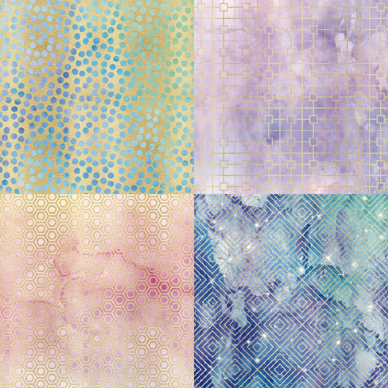 Colorful Gold Line Patterns Stars Diamonds Scrapbook Card Craft Cardstock Paper