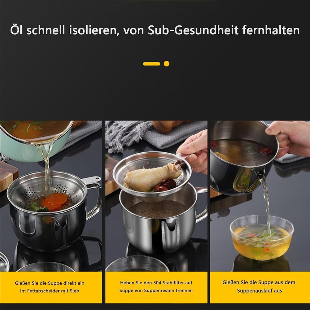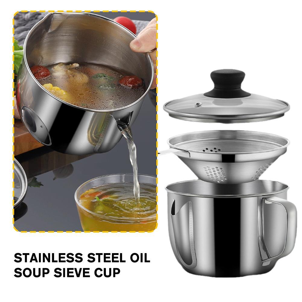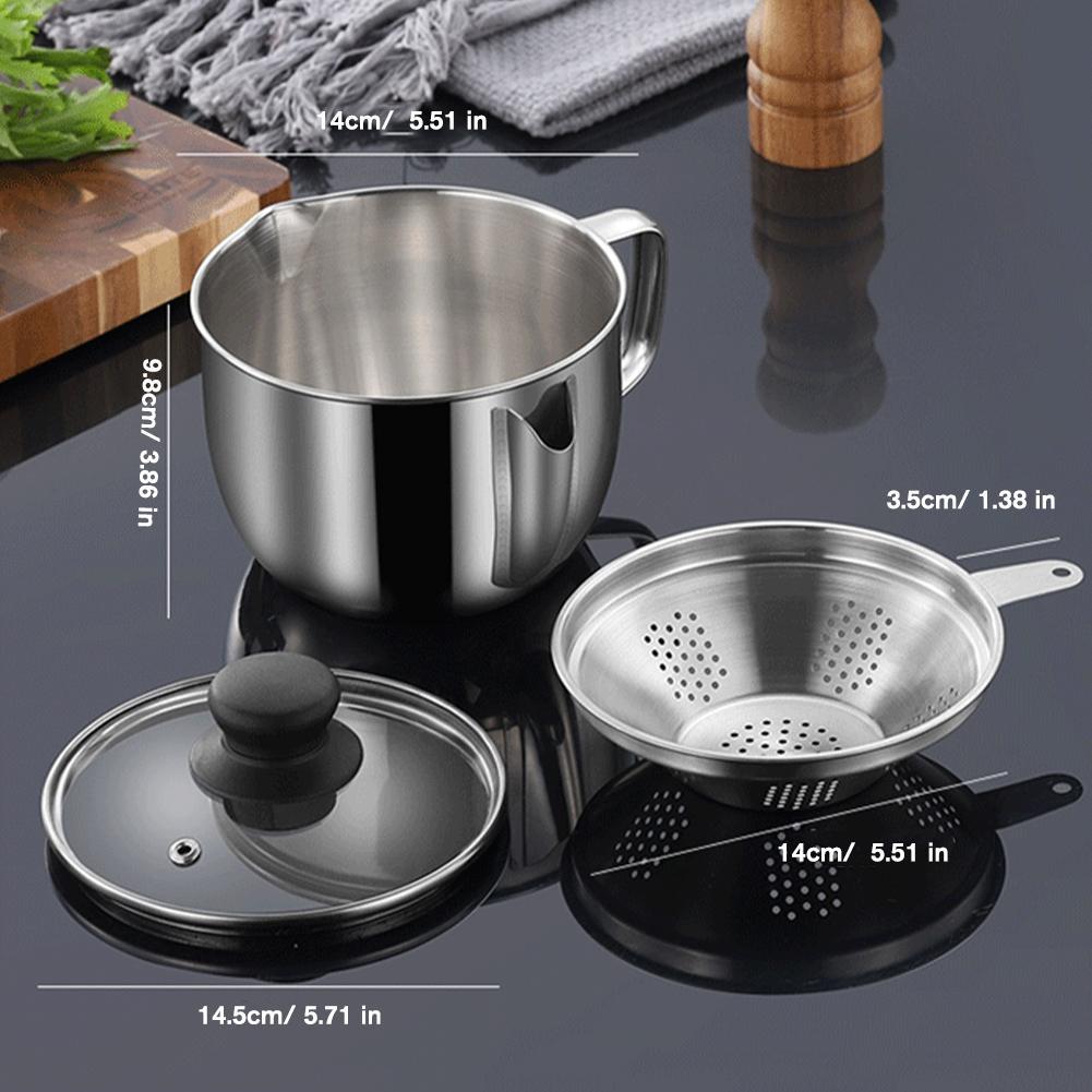 High-Quality Construction: Made from 304 stainless steel, the oil separator cup is built to last. It is resistant to corrosion and can withstand regular use without deteriorating, ensuring long-lasting performance in the kitchen.