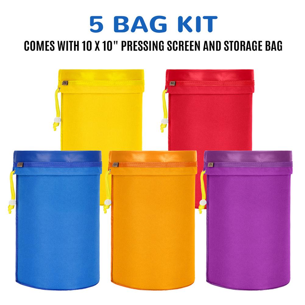 5*1 gallon filter bag (different colors), 1 press strainer, 1 black storage bag