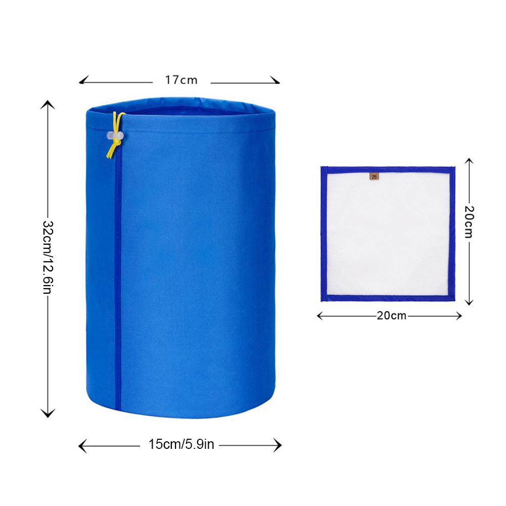 3.Each filter bag is 32 cm tall, 15 cm in diameter at the bottom and 17cm open at the top, and can hold about 1 gallon.