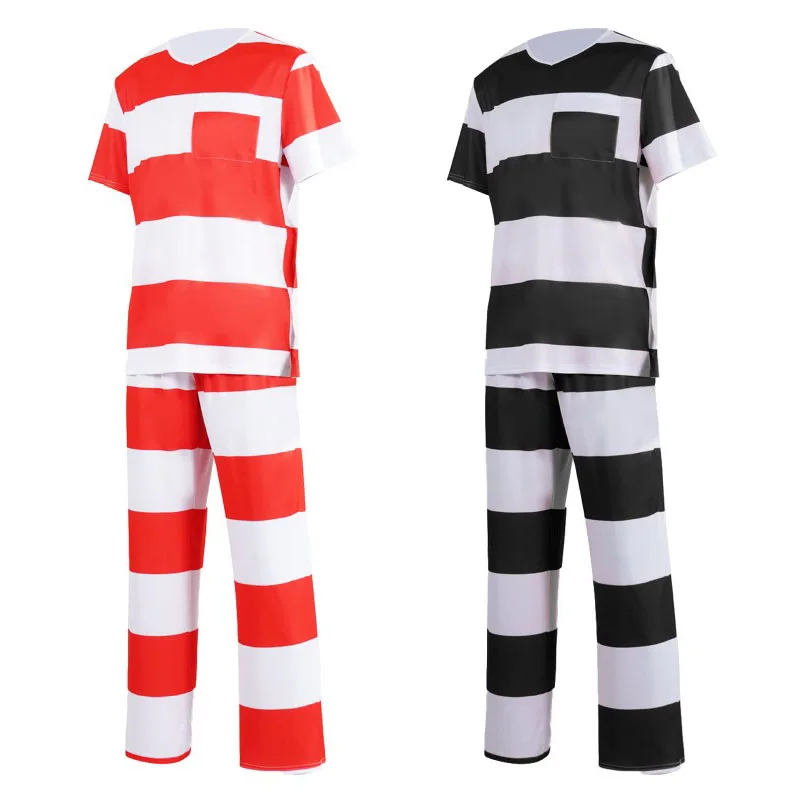 2025 Halloween Prisoner Cosplay Costume Role-playing Men And Women Prison Striped Uniform Set Carnival Unisex Prison Uniform