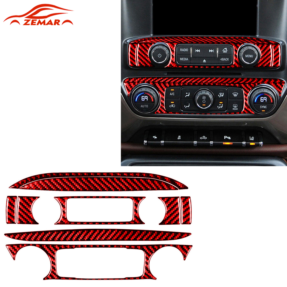 9x Red Carbon Fiber Radio AC Control Panel Cover Trim For Chevrolet Silverado 1500 for GMC Sierra 1500 2014-2018 Accessories