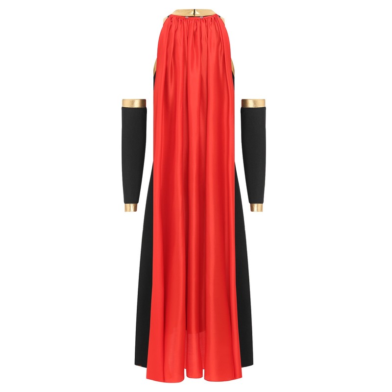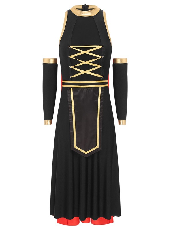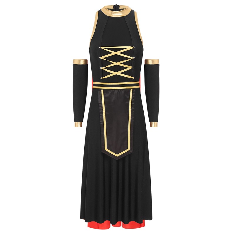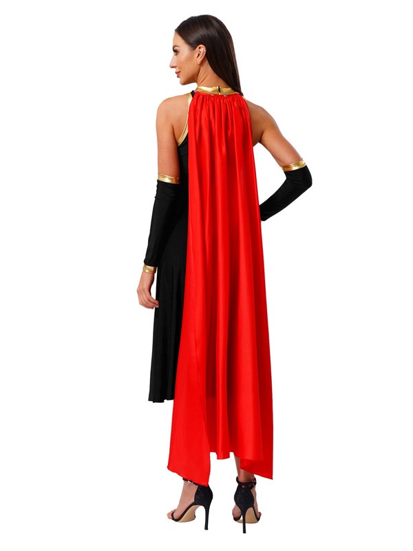 The contrast color design of this ancient Roman female warrior cosplay dress is eye-catching, adding a trendy and fashionable touch to the classic cosplay style.