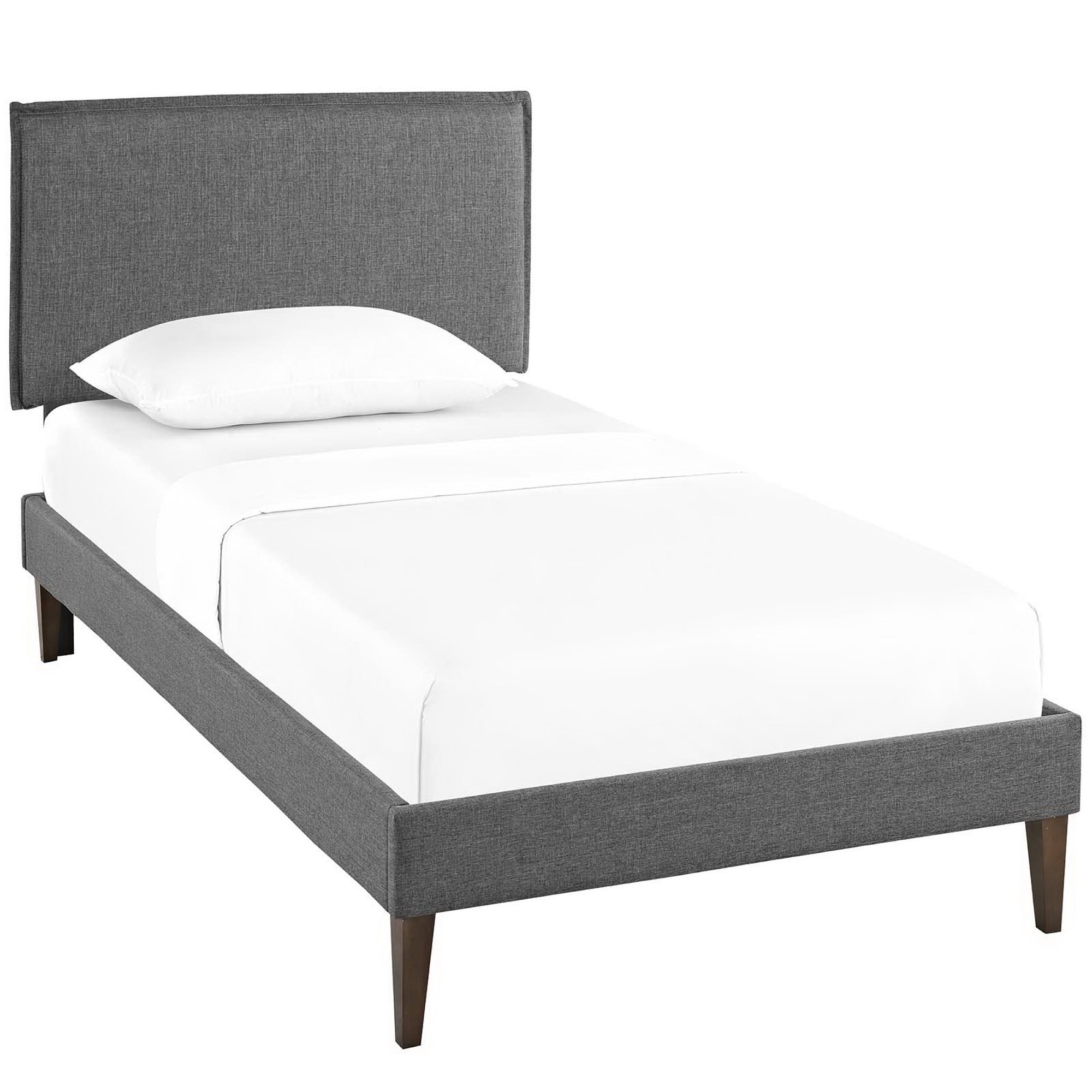 Camille Fabric Twin Platform Bed with Squared Tapered Legs in Gray