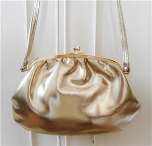 Vintage 1960's Gold Vinyl Evening Shoulder Bag!