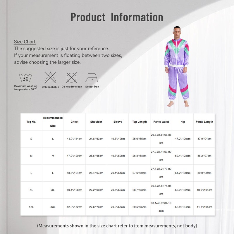 In retro 80s style, this suit is perfect for disco dance party and carnivals cosplay. The shell suit also can be worn as a casual outfit.
