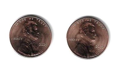 Buying a set of 2025 P&D Lincoln Shield Cents. Total of 2 coins, 1 "P" and 1 "D", in Uncirculated condition from Bank Rolls. Please see the pictures!!