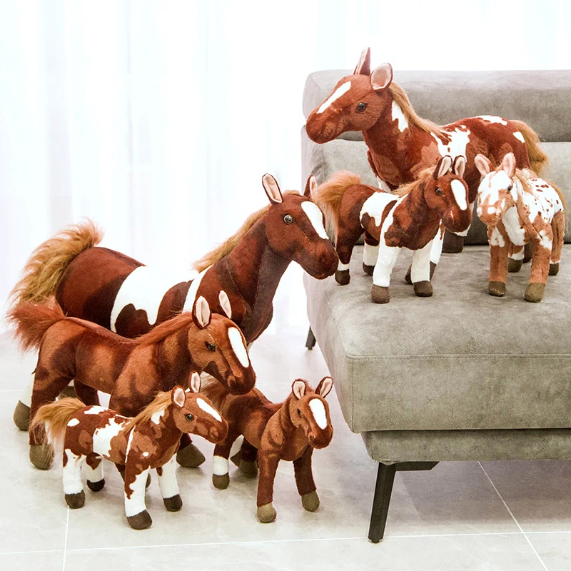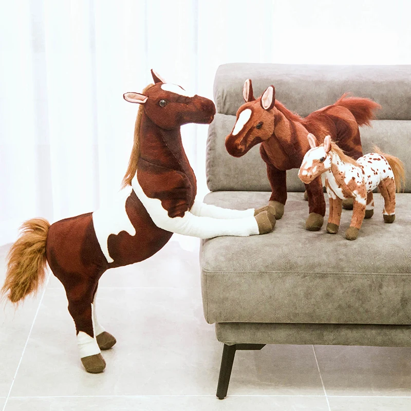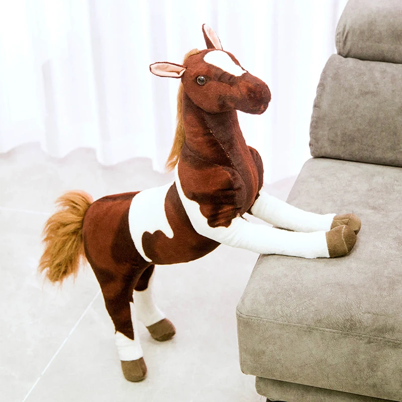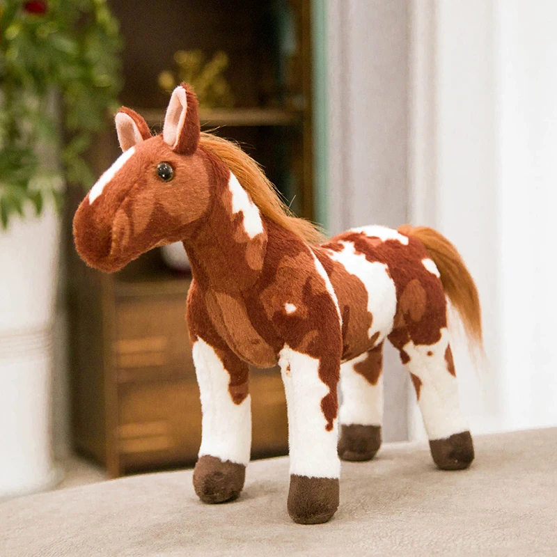 Simulation Horse Plush Toys Cute Stuffed Animal Doll Soft Realistic Standing Horse Toy Kids Boys Birthday Gift Home Decoration