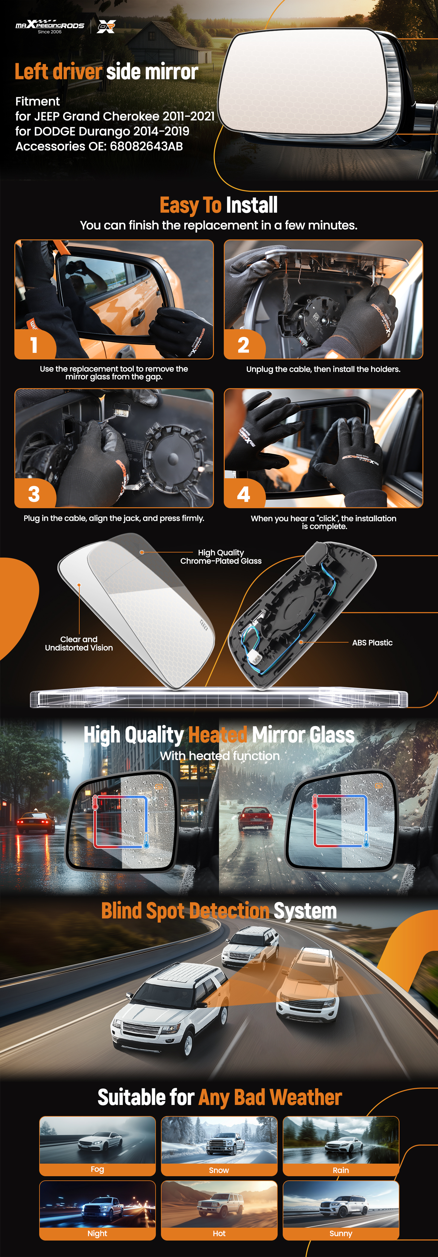 Mirror Glass Driver Side For JEEP Grand Cherokee 2011-2021 DODGE 68082643AB