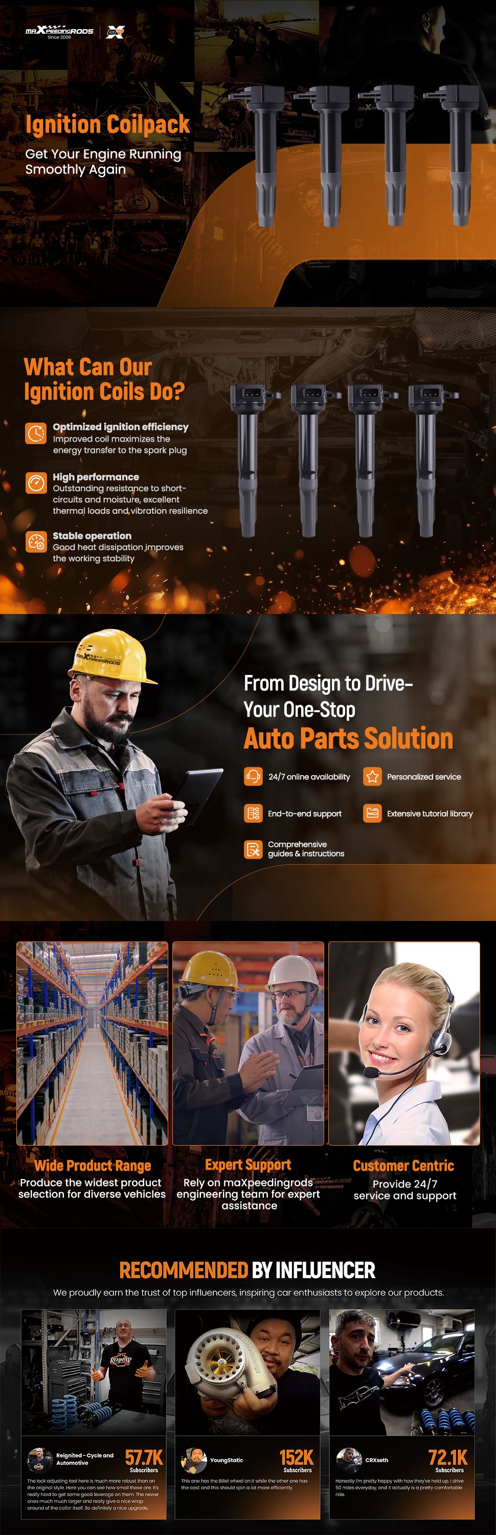 3. Isolator manufactured using high voltage-resistant thermoplastics to prevent premature coil failure.