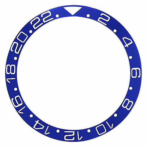 This blue ceramic watch insert is designed for watches with dimensions 37.70 mm by 30.70 mm. It is supplied as a single insert featuring a silver font for legibility.