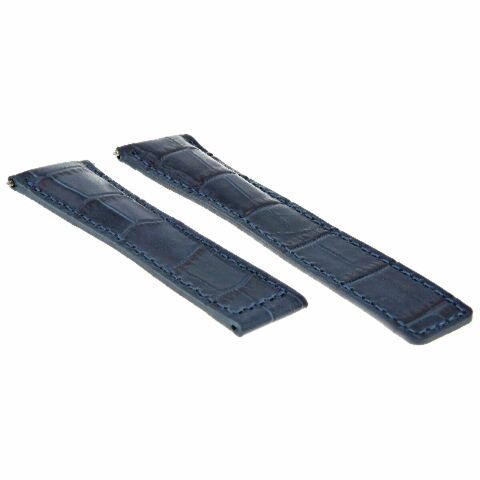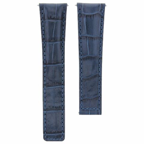 This listing offers a genuine Italian leather strap in a blue textured pattern, with blue thread stitching. It is designed to fit the Tag Heuer Carrera Twin Time WV2115 with a deployment clasp, enhancing the watch's appearance and comfort.