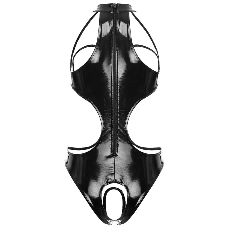 Designed with halter, sleeveless, cup hollow out, open crotch, back zipper and slim fit, one-piece bodysuit linger makes you very sexy.