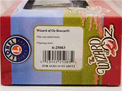 YOUR Classic Era Train Headquarters! Uncatalogued, Only Available in 2006 set Here is an uncatalogued boxcar, available only in the 2006 Wizard of Oz set. This is Boxcar #1. As you can see, it features Dorothy and the Good Witch as well as the Yellow Brick Road and some Munchkins. Check out my other listings for the separate sale add on cars, too. FEATURES: