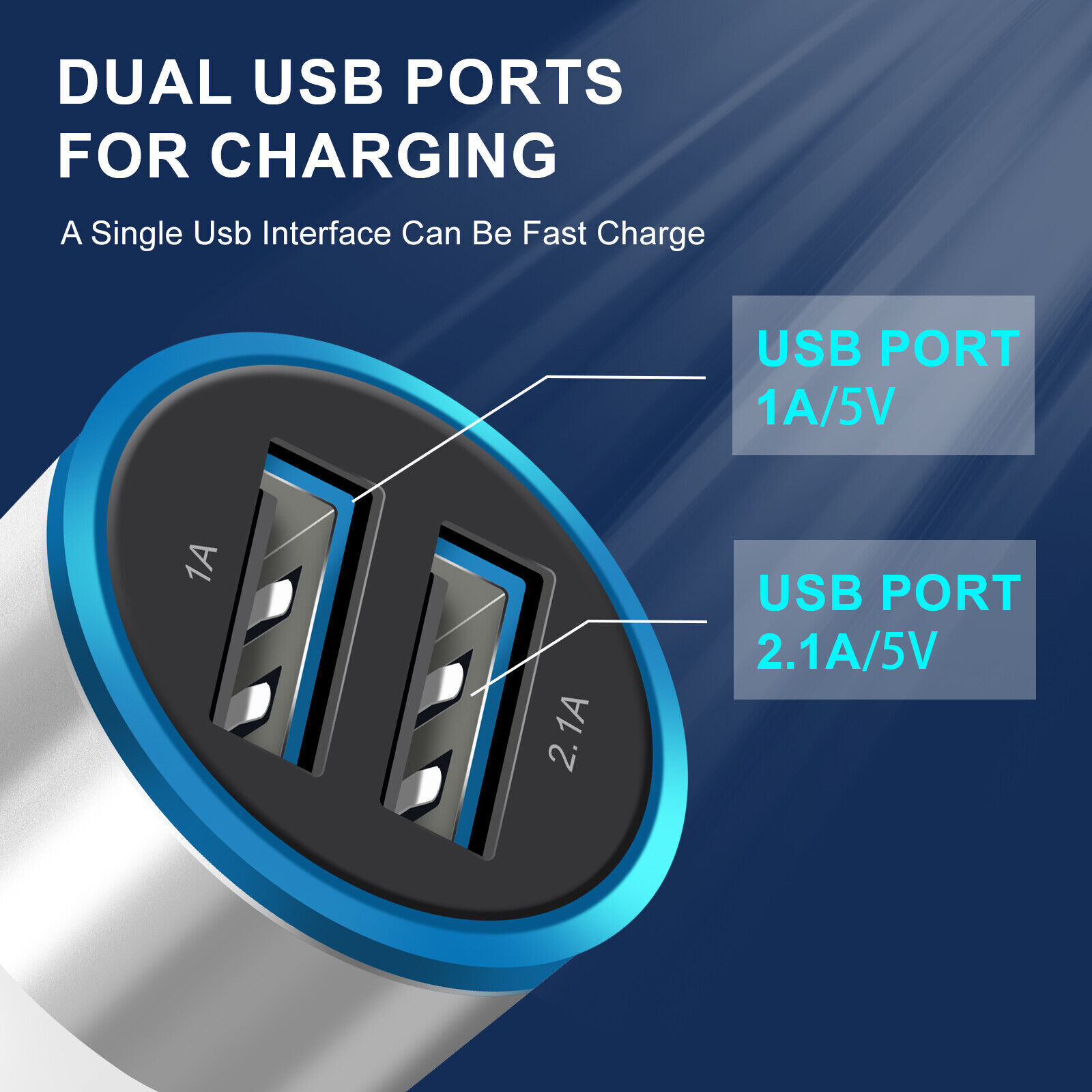 • Dual USB port design, charge two devices simultaneously