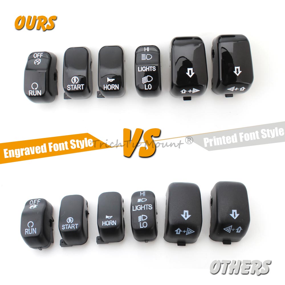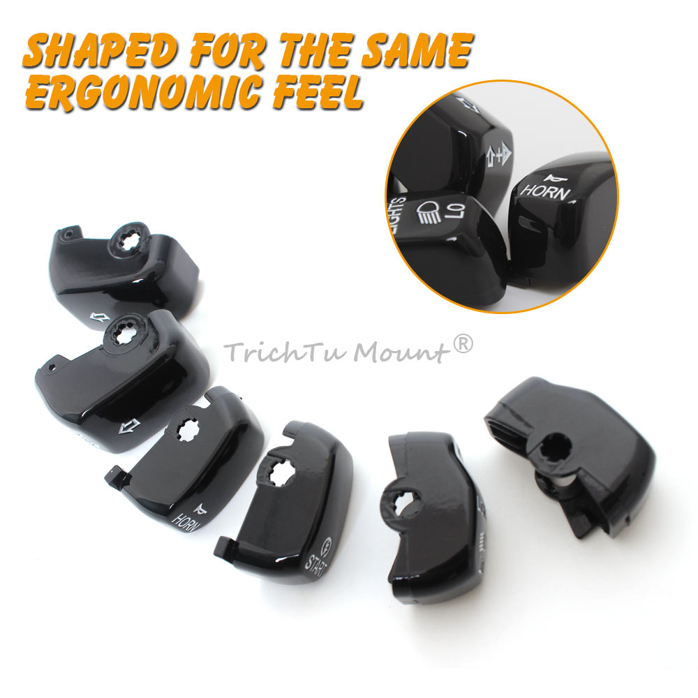 A good replaced set for your damaged or non-working original, Replace the stock black caps without re-wiring. Kit contains a complete set of chrome switch caps for the left and right handlebar switches. Shaped for the same ergonomic feel .