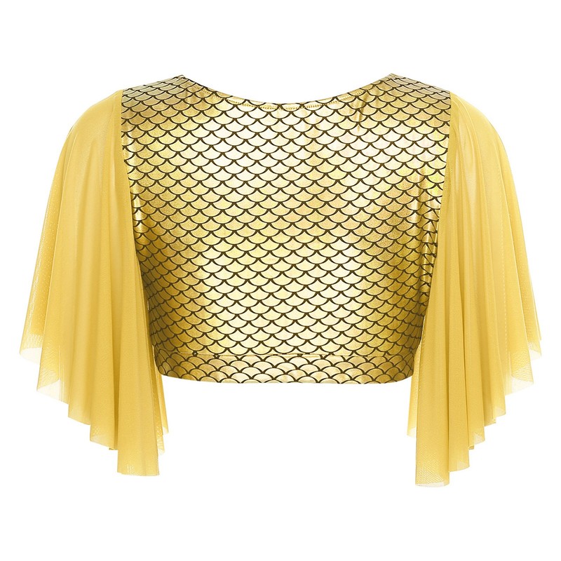 Women's Fishscale Print Crop Top Shiny Metallic Mesh Short Sleeve Themed Party