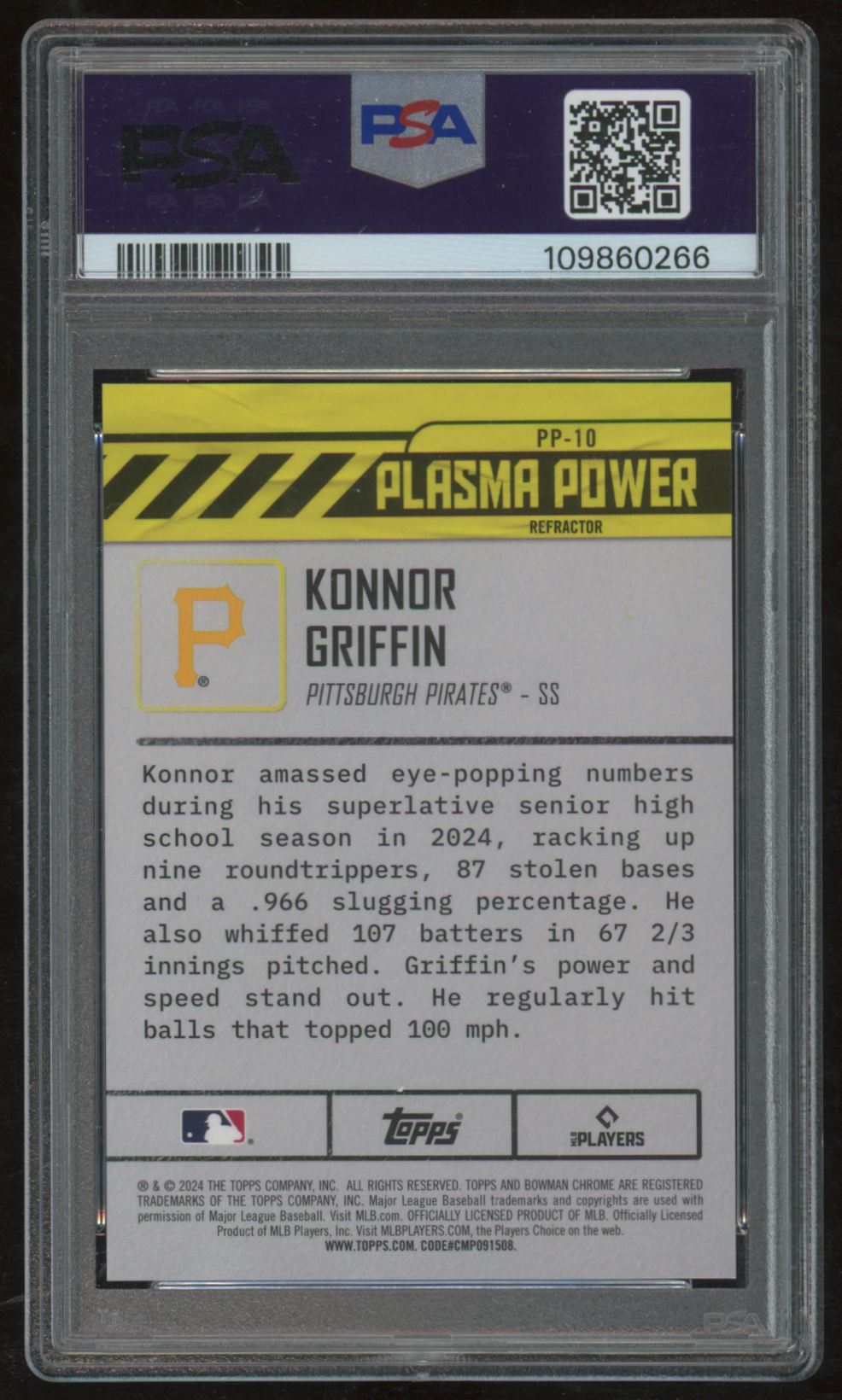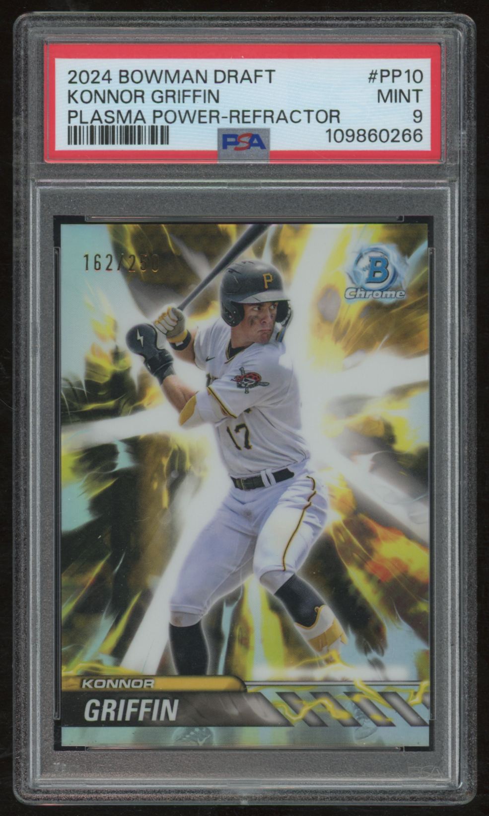 | KONNOR GRIFFIN 2024 BOWMAN DRAFT PLASMA POWER #PP-10 REFRACTOR 162/250 PSA 9 |