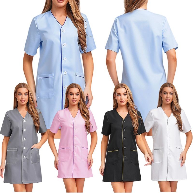 Set Include: 1Pc Women's Beautician Workwear V - Neck Short - Sleeve Front - Button Pockets Lab Coat