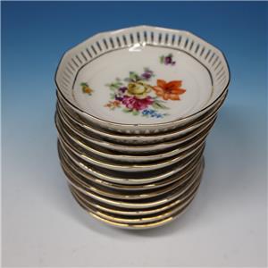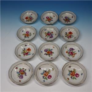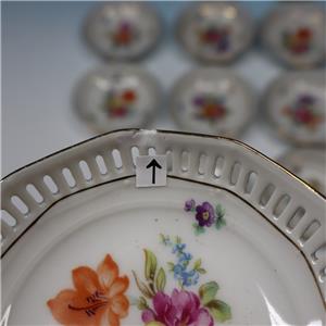 We are pleased to offer these Schumann Dresden Bavaria - 12 Reticulated Floral Nut Dishes - 3¾ inches for sale. The nut dishes measure 3¾ inches wide. They are marked as shown. One dish has an edge chip. The others are in great condition with no chips or cracks. The photographs are high definition and can be zoomed for closer inspection.