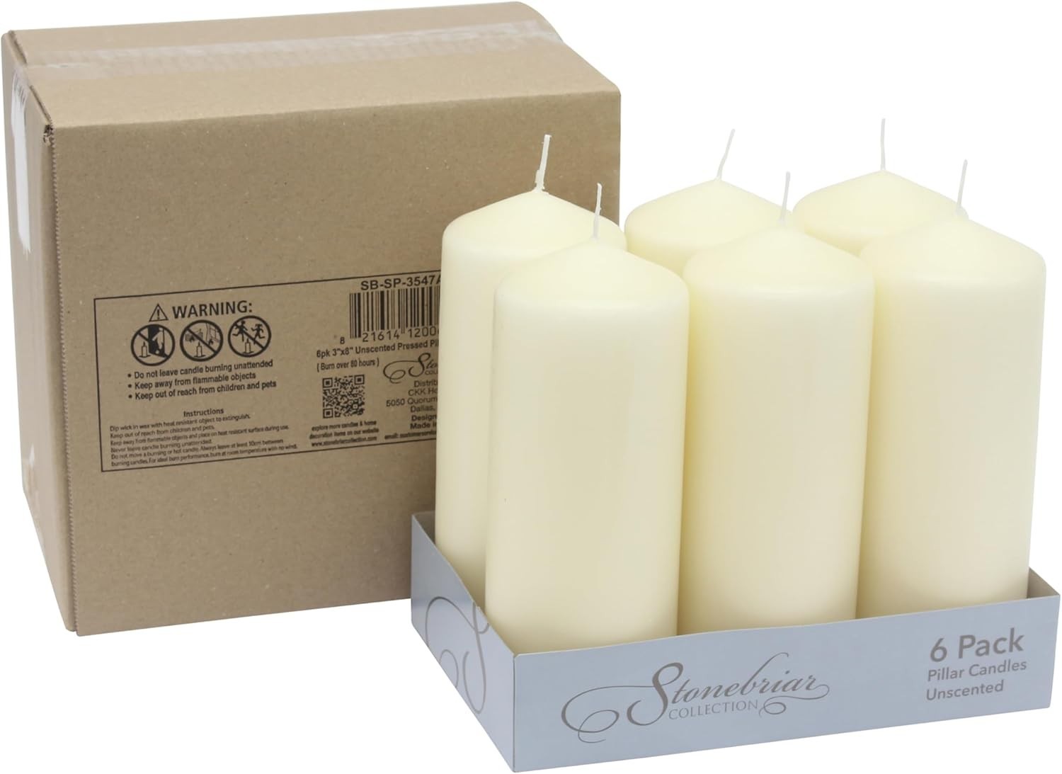 6 Pack Long Burning 80 Hour Ivory Pillar Candles