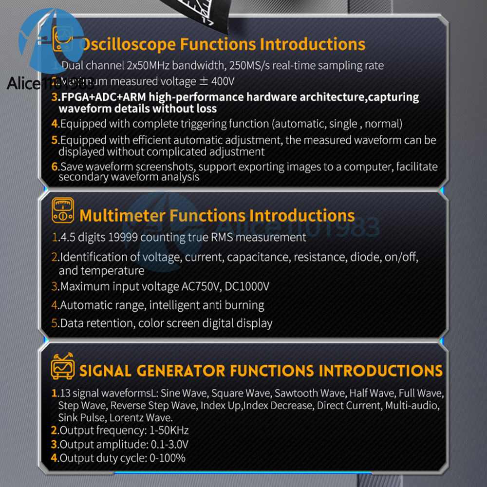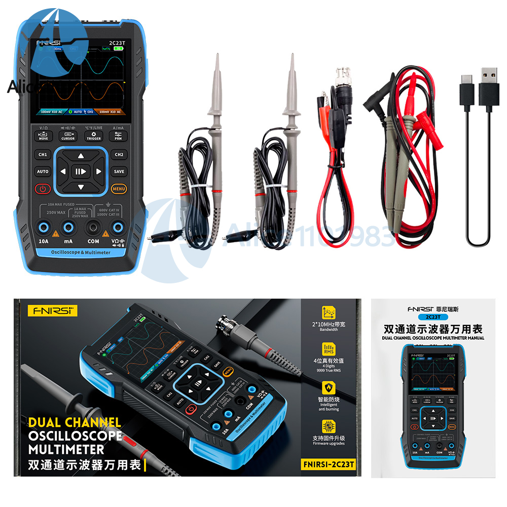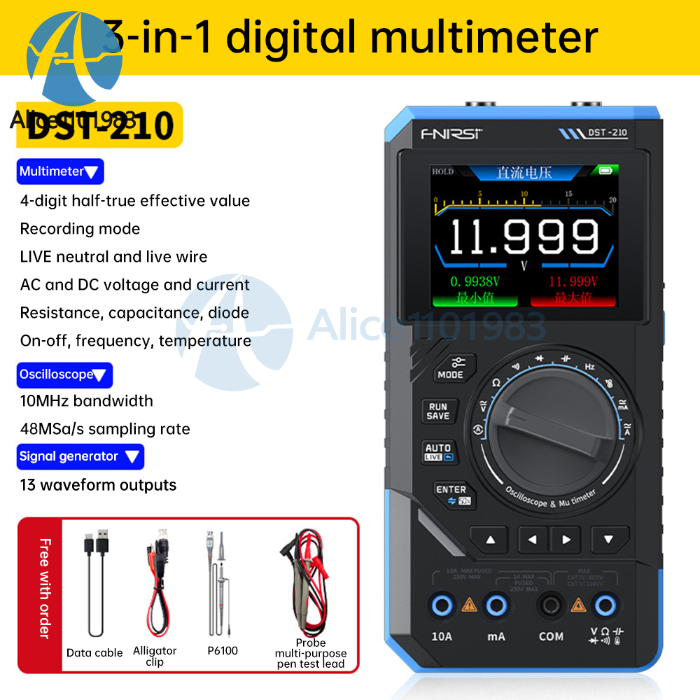1. Dual-channel 3-in-1 digital oscilloscope: multimeter + oscilloscope + signal generator