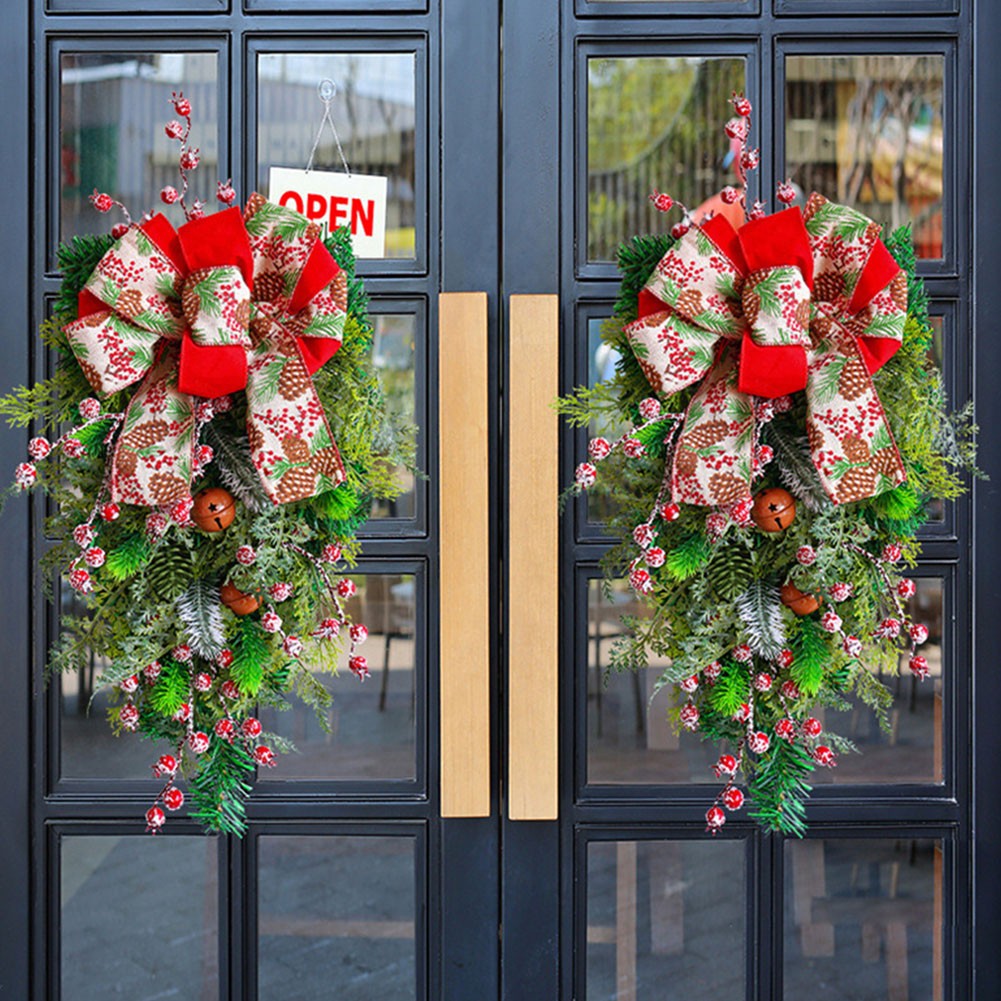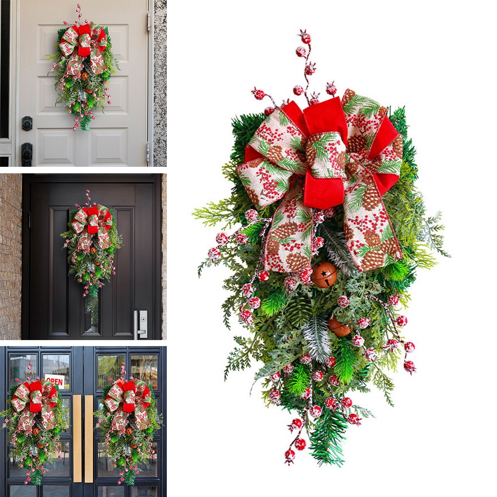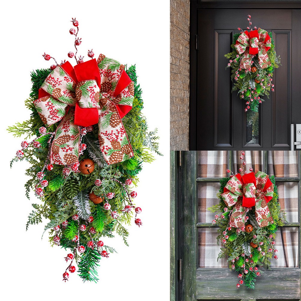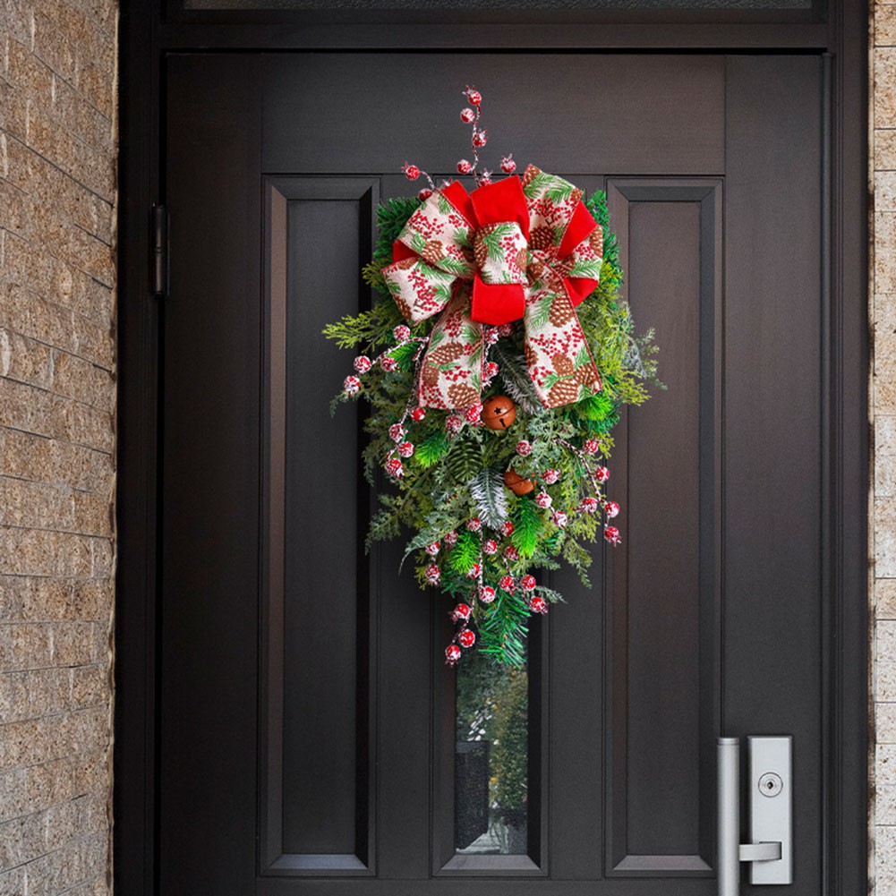*Festive Design: The artificial Christmas teardrop swag is adorned with classic for elements like red berries, pine cones, and large bows, creating a charming and nostalgic holiday that perfectly embodies the for SPIRIT of Christmas.