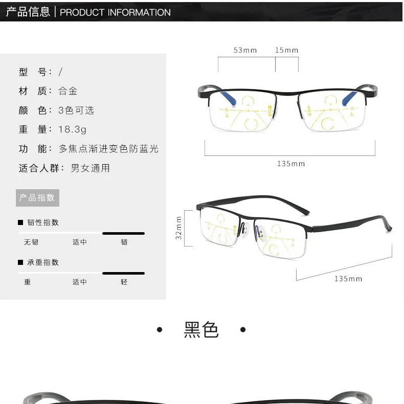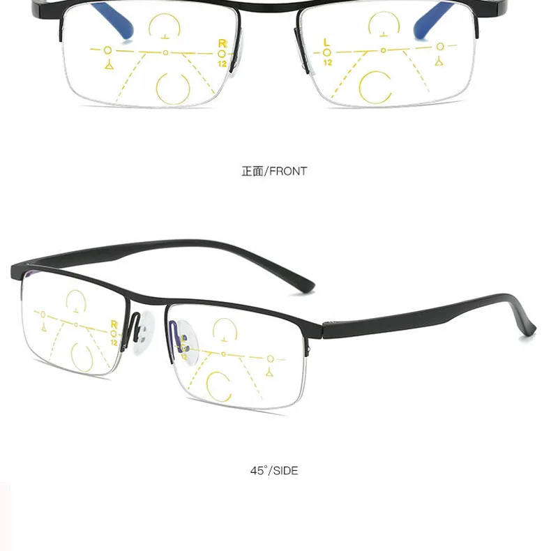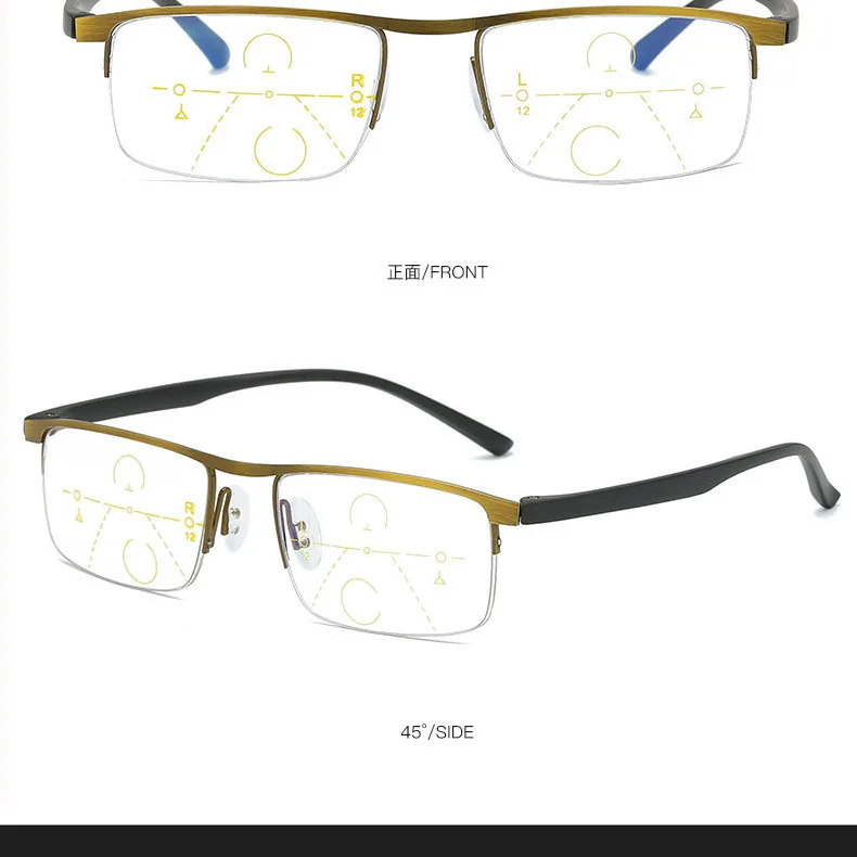 Progressive Reading Glasses Multifocal Anti-blue Light Smart Zoom Glasses Half Frame Metal Men Women +1.5 To +4.0