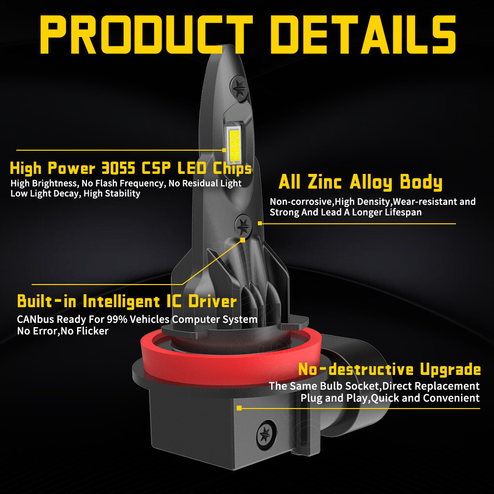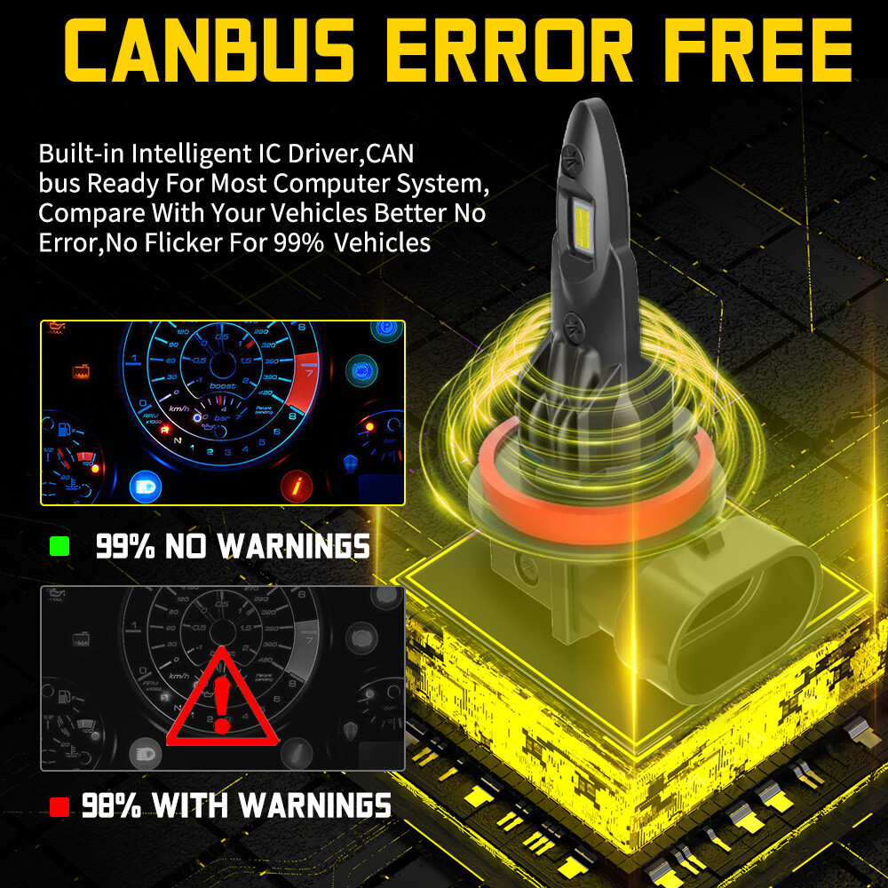 【High Compatibility】Our 9005 H11 light bulbs are compatible with most vehicles, the built-in decoder is designed to work with 99% of vehicles, you can also contact us before you buy, we will check it for you.
