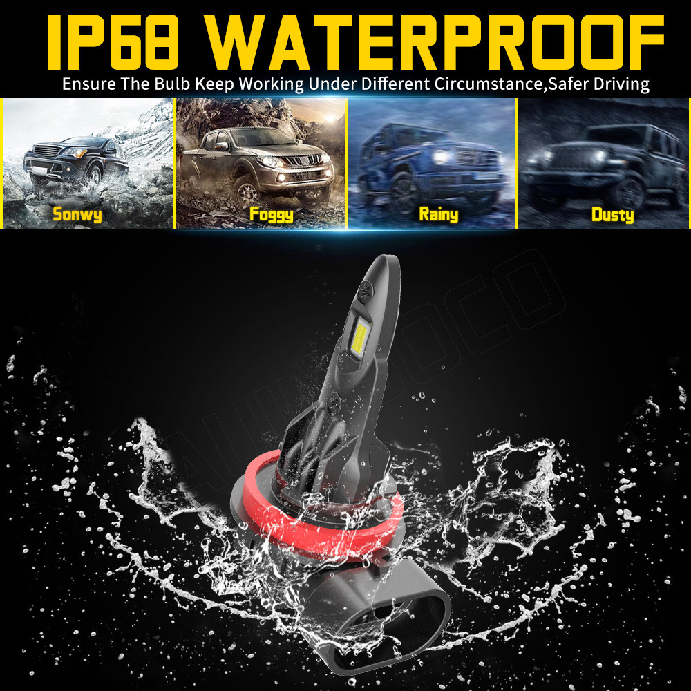 【Ultra-long Life】A52 9005 H11 light bulbs improved the cooling system, the cooling system is more advanced, the upgraded version of the heat dissipation system allows the lights to be used more than 50,000 hours. IP68 waterproof design can ensure your safety on the road in bad weather.