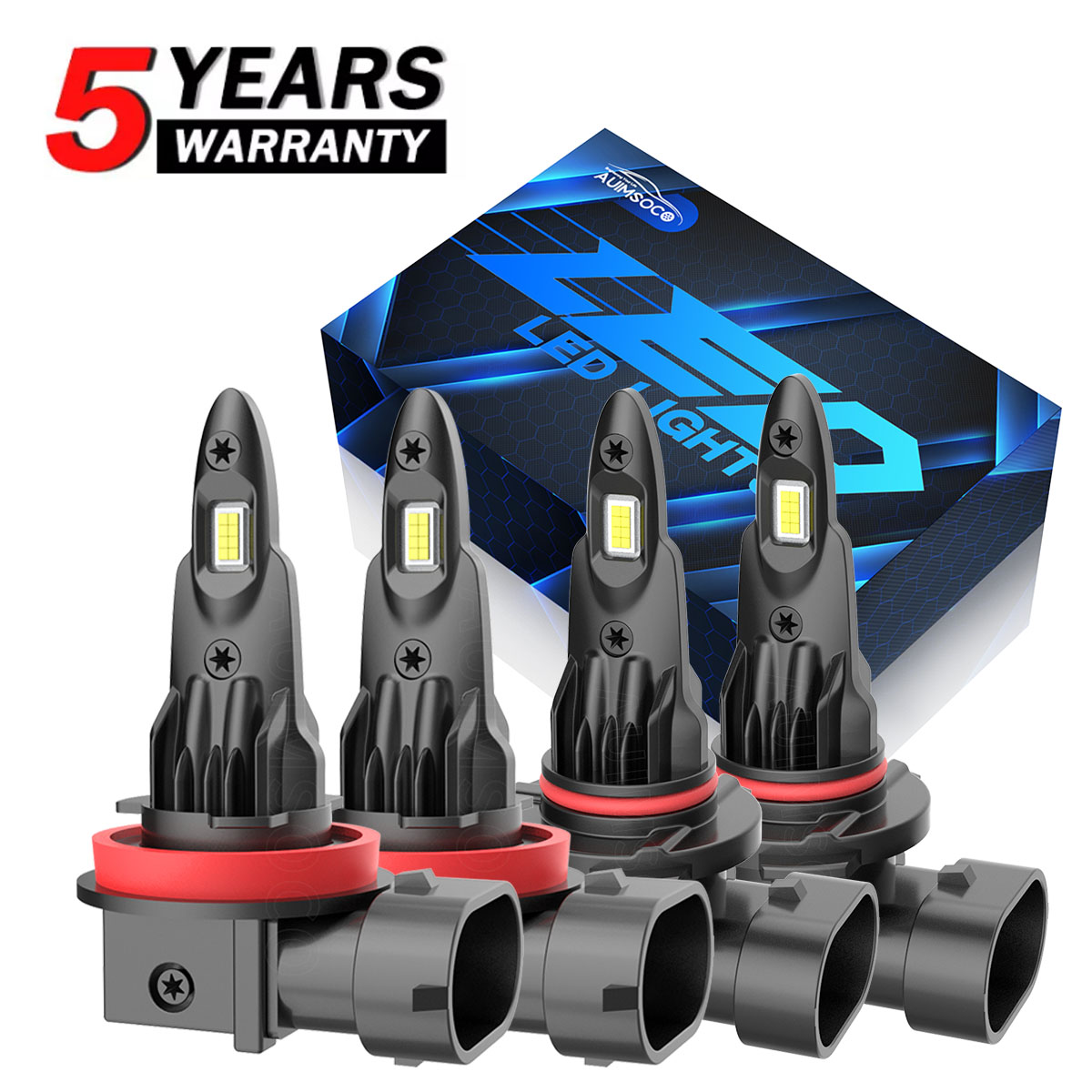 【Brightness 300%】AUIMSOCO 9005 H11 light bulbs uses the latest upgraded version of the chip, 300% brighter than halogen bulbs, 10000LM 6500K Xenon White, higher brightness, you can enjoy a brighter, safer driving process!