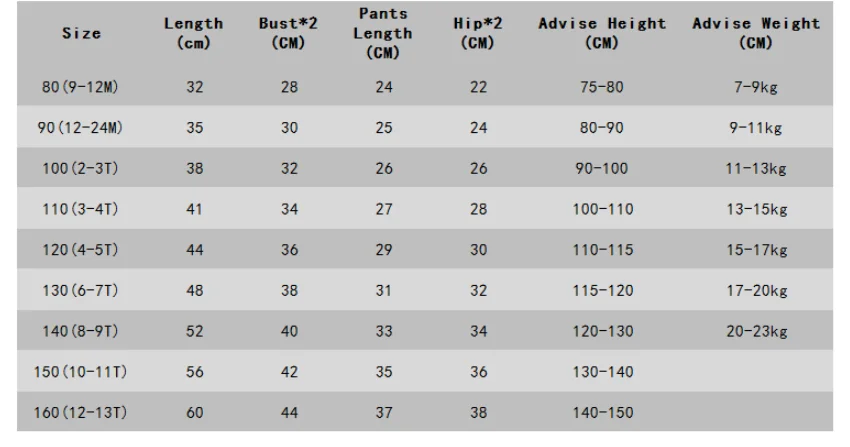 80 Tops Length:32cm bust:28*2cm Pants:24cm Age:9-12M