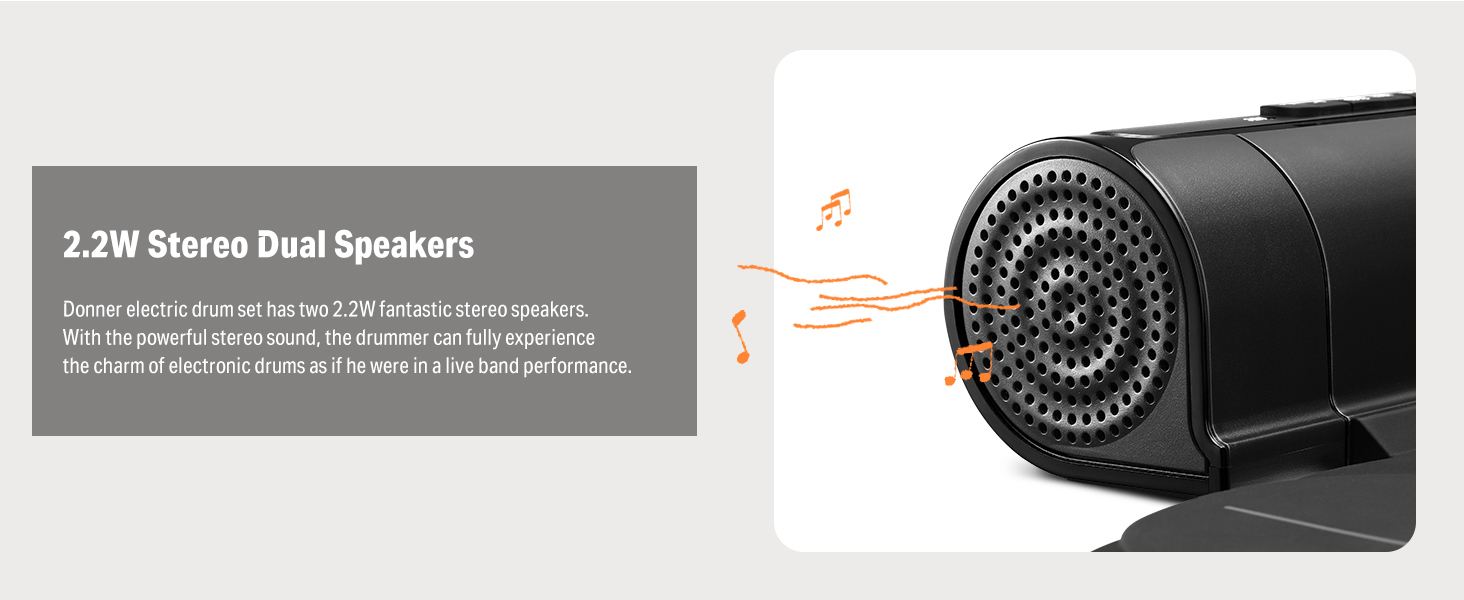 [ 2.2W Stereo Dual Speakers ] The DED-20 electric drum pad has two fantastic stereo speakers that deliver the powerful, impactful sound you want. The volume of the electric drum set can be adjusted to 9 different levels and you can adjust the volume according to your needs. 180s-long recording function can record a drummer's Moment of inspiration and enhance their creative potential.