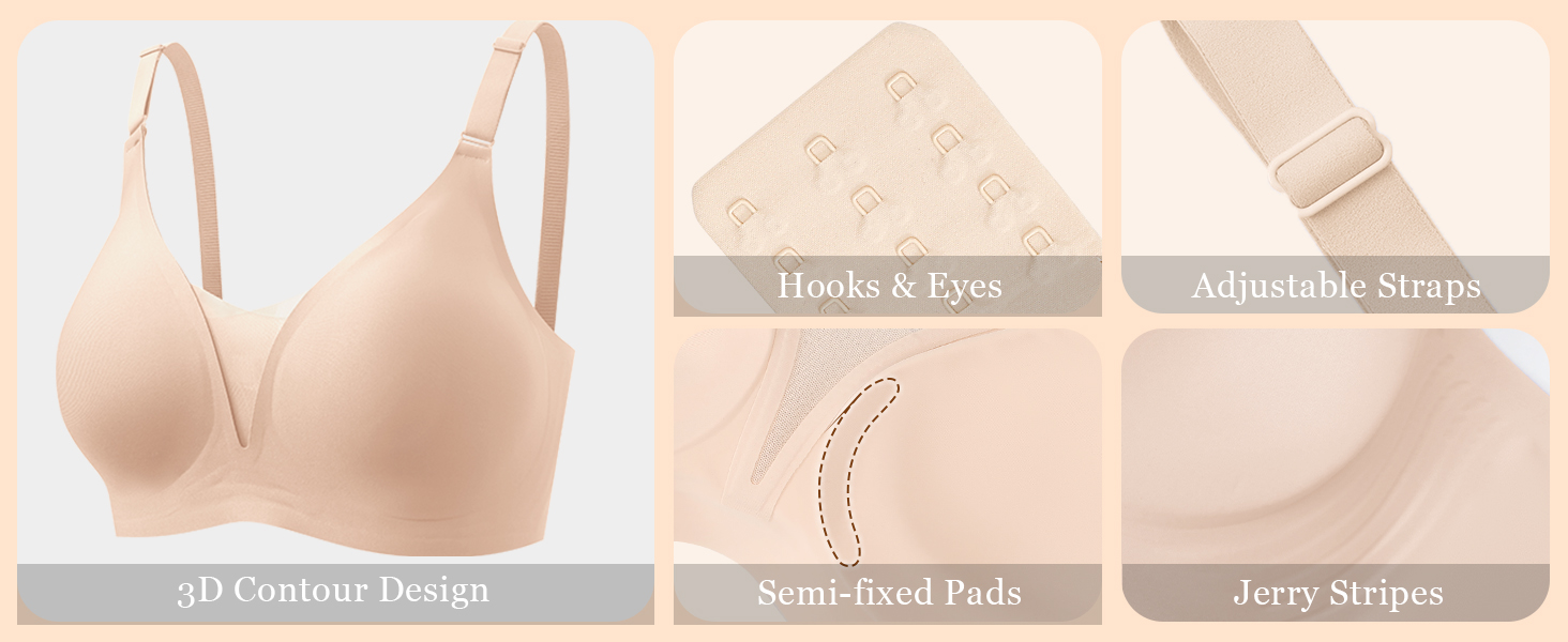 Wireless Push Up Bra - Featuring with jelly stripes and 3D cup shape support design, soft and powerful. Our supportive bras for women provides support and lift for you, which can prevent sagging breasts and hide your accessory breasts, contouring your figure perfectly