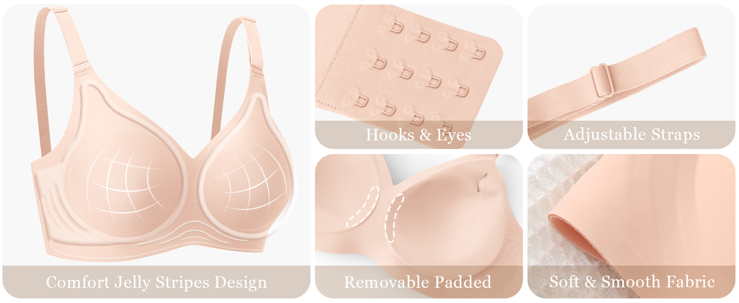 Women's Support Bra - Soft and strong with jelly stripes and 3D cup shape support. Our wireless push-up bras provide you with support and lift to prevent sagging breasts, hide your accessory bust and give you a stunning chest line.