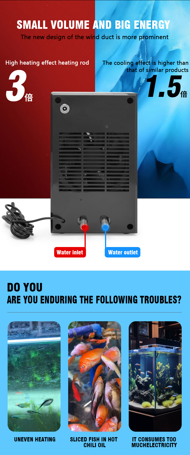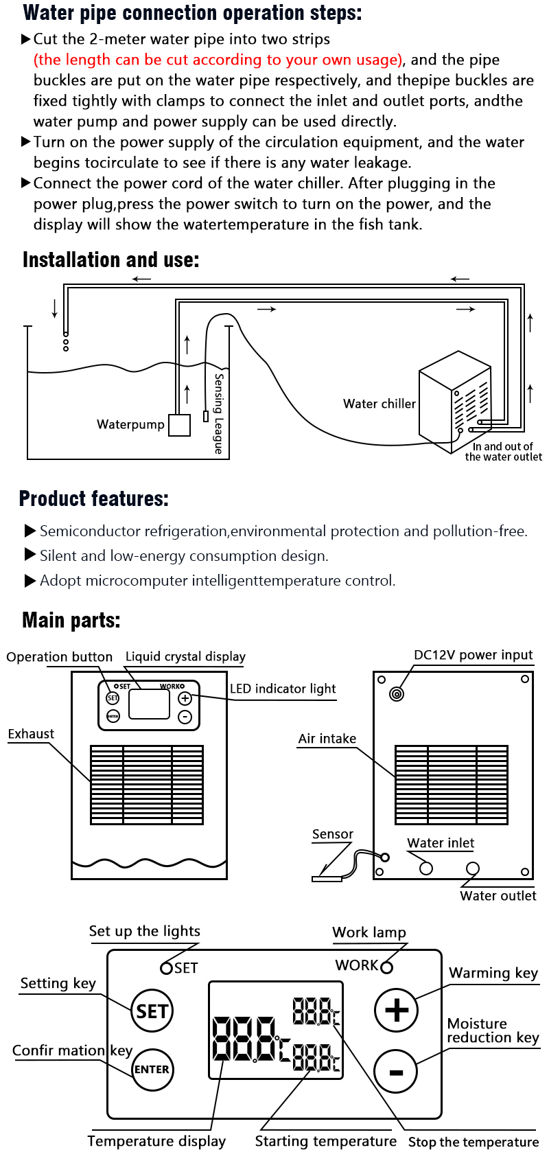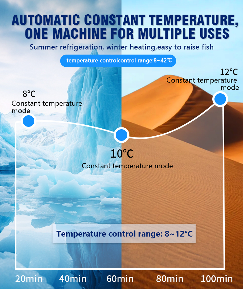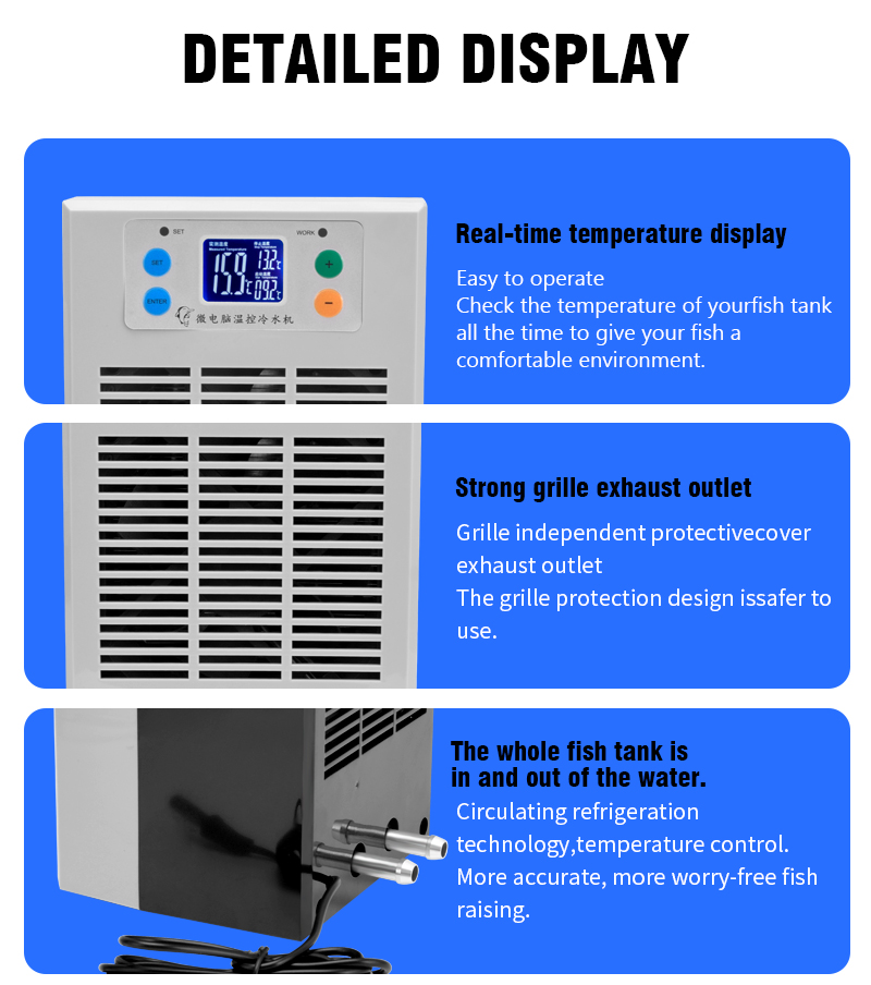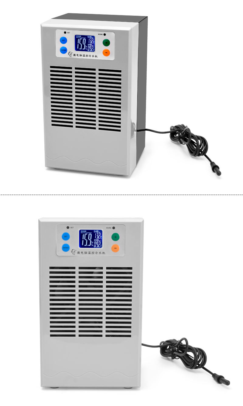 The Aquarium Chiller is a small inline chiller designed to effectively cool the water in ornamental fish tanks, with a power of 100W and a capacity of 20 liters. Made in China, this product is suitable for all water types, making it a versatile solution for maintaining the ideal water temperature for your aquatic pets. Perfect for small aquarium setups, this chiller ensures a stable and comfortable environment for your fish to thrive.