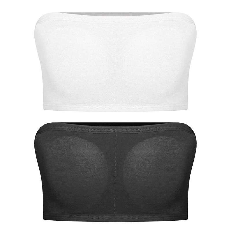 Wire-free support, plunge V-neckline, with adjustable elastic shoulder straps.