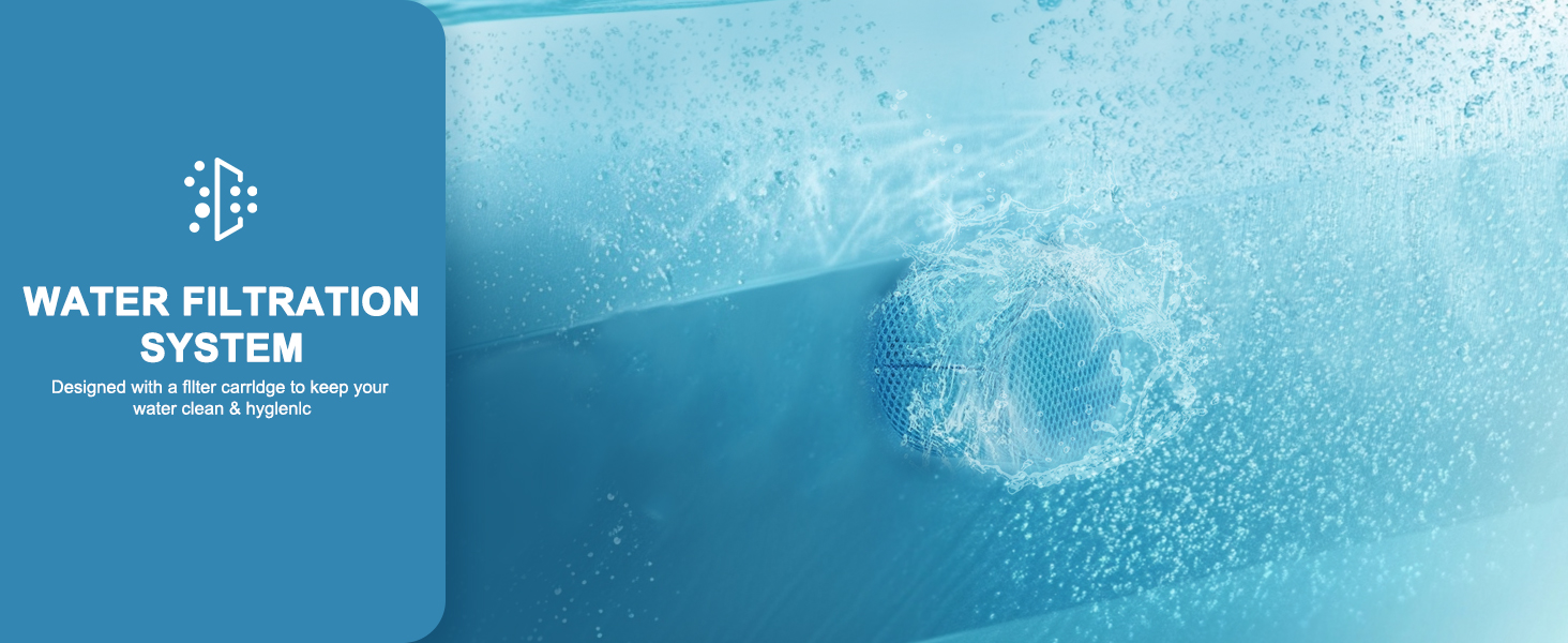 SUPERIOR FILTRATION - Equipped with an advanced filtration system, the blow-up hot tub ensures consistently clean water. Two easily replaceable filter cartridges efficiently capture sand, debris, and hair. A handy reminder from the heater pump prompts filter replacement after 168 hours of use. When the filter loses its filtering function, the control panel will automatically alarm and display FC