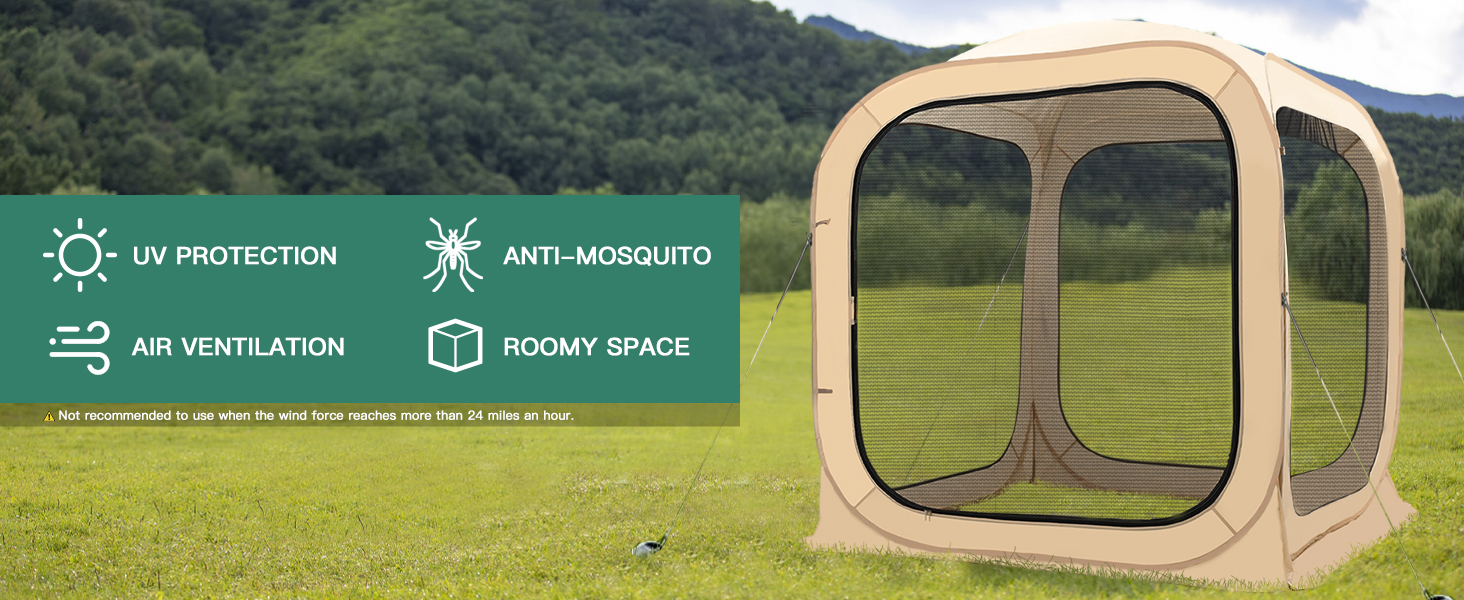 Ultra Clear Vision: Camping tent made from Mesh , offers a 540°ultra clear view of your surroundings. Ideal for outdoor games such as soccer, baseball, softball, field hockey, and a variety outdoor activities such as fishing, camping, BBQ. The fully transparent roof is perfect for stargazing at night. All weather shelter rain tent for outdoor events.