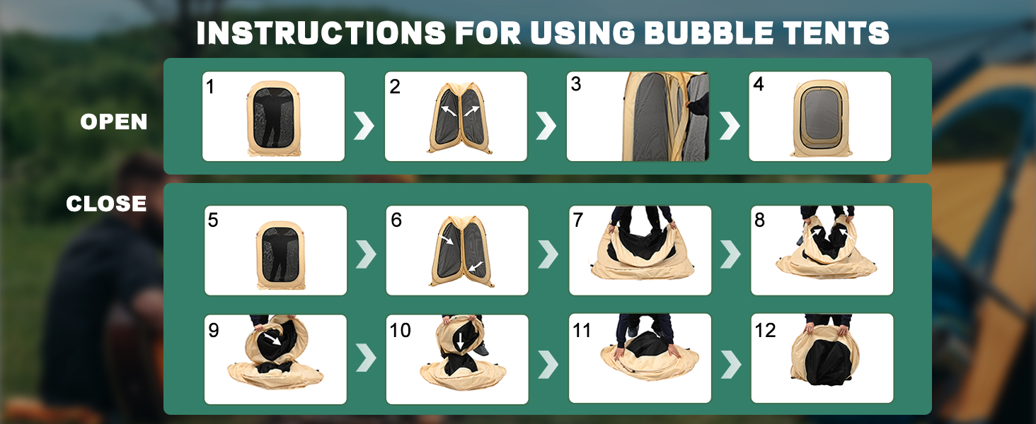 Pop-up & Easy to Setup: Our pop-up bubble tent is portable and can be set up by a single person in about one minute. An automatic pop-up, no assembly needed tent perfect for setting boundaries between you and others out in public or in the privacy of your own space. The tent can be easily folded down and fit into the carry bag with a compact size.