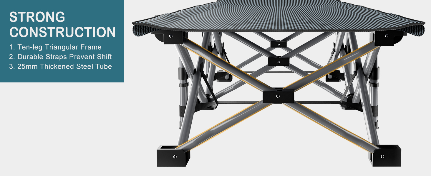 HEAVY DUTY & STABLE-Unique square high strength steel tubes design. Weights :26.46 lb; Supports up to 900 lbs. Can bear 1 adult or 2 children sleeping on it to rest.