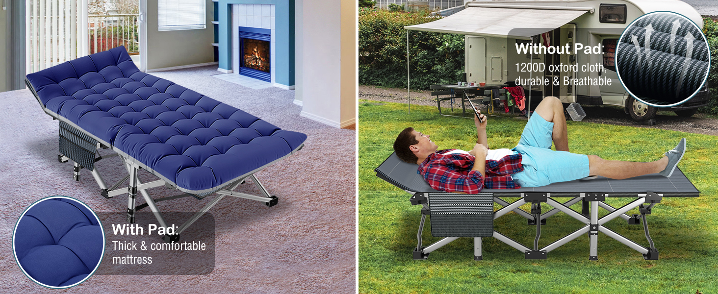 COMFORTABLE MATTRESS- Equipped with a mattress, so that you can sleep more comfortably on this portable camping bed; do not hesitate anymore, hurry up and just place your order.