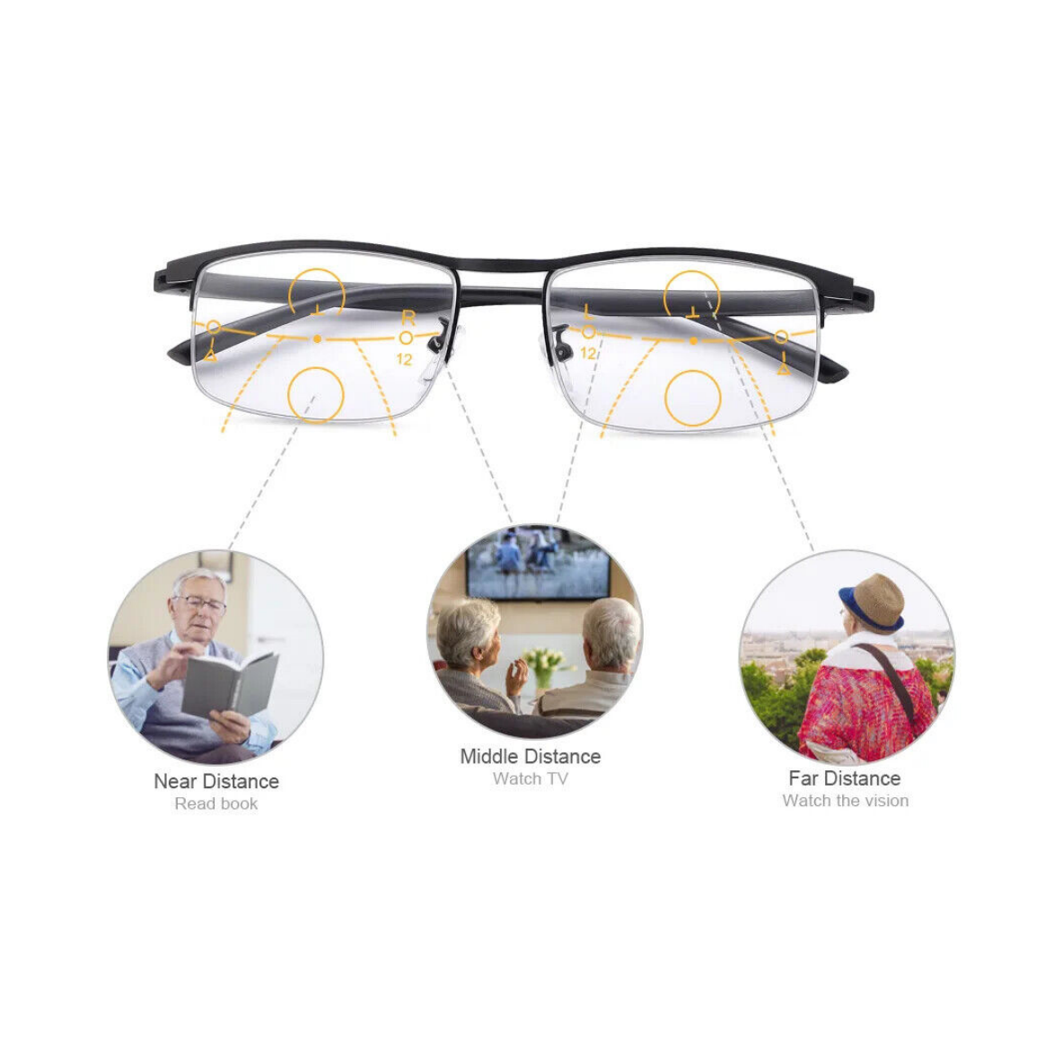 Progressive multifocus reading glasses are used to correct the problem of presbyopia in middle-aged and elderly people.