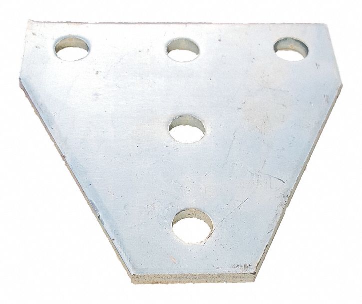 Channel Flat Plate, 5 Hole, Tee, Width 5 3/8 In, Depth 5 3/8 In, 1/4 In Thickness, Cold Formed, Steel, Silver, Electrogalvanized, Attaching Or Connecting Any Series Channel Flat plate features strong corrosion resistance, so it can be used in metal framing applications.