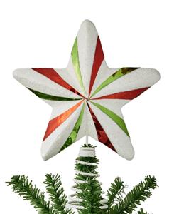 Holiday Lane Mini Green Red and White Striped Star Mini Tree Topper