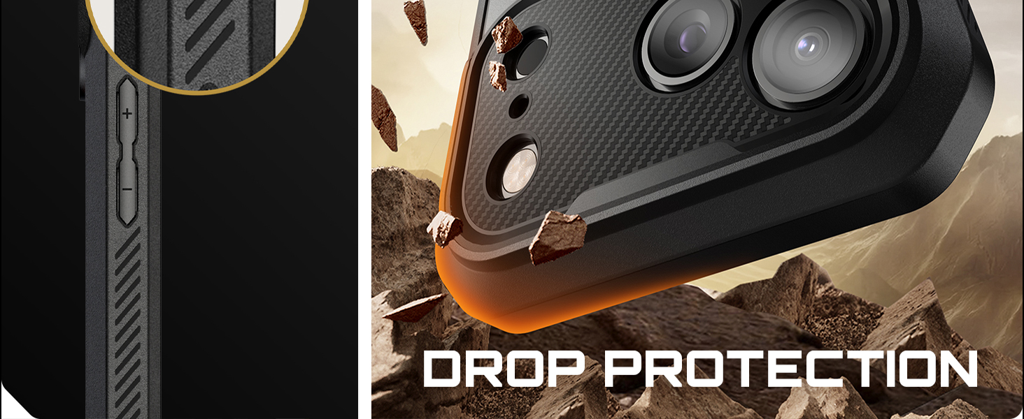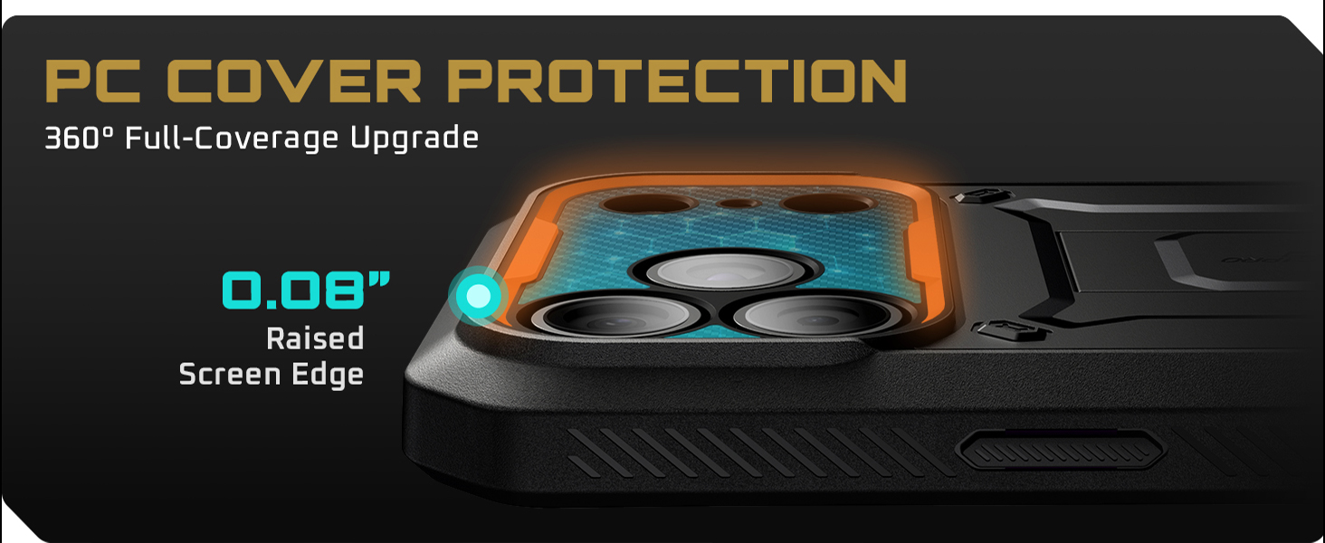 Engineered for Ultimate Defense: Survives drops up to 20 ft (6 m) with military-grade impact resistance (MIL-STD-810H-516.6 certified). Built with a hybrid TPU + PC frame, reinforced corner airbags, and a PET built-in screen protector. Precision-raised edges (1.5 mm camera lip, 2 mm screen lip) and an ultra-slim ~3.94 mm back profile keep your device safe. Includes an additional TPU guard designed to protect the iPhone 17 Pro Max camera array.